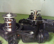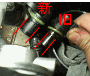 BMW 525(E39) エンジン不調!! エンジンが吹けが悪い、エンストする、始動不良・・・・。 とりあえずテスターで見てみましょう。 ![]() 「カムシャフト ポジション センサー インテーク側カムシャフト 信号が適切ではありません」 「冷却系特性マップ 断線/短絡」 以上2つのフォルトメモリーが入力されてました。フォルトをメモってから消去!エンジン再始動!試運転してフォルトが入るかどうか・・・・・ってゆーかずいぶんこの525が遅く感じます。パワーってこんなものだっけ?路肩に停車してテスターでフォルトを呼び出すとまた同じメモリーが入力されてます。壊れているようです。当たり前ですが。嫌だなぁBMWは。なんか苦手なんですよね〜。カムポジセンサーはとりあえず交換します。 ![]() ![]() 青い部分に付いてるインカムのソレノイドを外し、オイルエレメントのキャップも外します。 (できればソレノイドのOリング、エレメントキャップのOリングも交換しましょう) ![]() ![]() 5mmの6角一本で外れます。 ![]() カプラーはインマニの下。エアクリとエンジンの隙間から見えます。 ![]() ![]() ![]() よく壊れるパーツですが、交換したセンサーは太さが違ってました。太いほうが新しいものです。対策品なんでしょうね。 カムポジセンサー交換終了!! 次は「冷却系特性マップ 断線/短絡」をどうにかします。 冷却系特性マップって何でしょう?断線、短絡というからには何か線が切れてるとかあるのかな・・・・・・。冷却?冷却?とつぶやきながらアッパーホースを辿っていきサーモハウジングを見るとハウジングの頭に付いているカプラー下から水漏れ跡があります。 ![]() ![]() カプラーをグリグリしてみたらモゲました(笑)思い切り断線してます。これが冷却系特性マップ 断線/短絡という事で間違いなさそう。 ![]() 早速パーツを購入。商品名「電動サーモスタット」。 ハウジング一体型サーモ(Oリング付き)で¥9000弱で購入できました(画像奥)。 ![]() あら、ここ改良されてますね(上の画像と比較してください)。 ![]() 奥が新品。サーモの形もハウジングへの付き方も違います。 ![]() 交換はファンを外す以外、特別難しくないです。アッパーホースとロアホースはクリップを外して引き抜くだけですが距離が伸びている車はそれなりに固くて外れにくくなっていると思います。ハウジング本体を外すのは10mm、13mmのロングソケットがあると便利かも。 作業後はフォルトもメモリーされず、パワー感が大幅に増しました。 直って良かった^^;