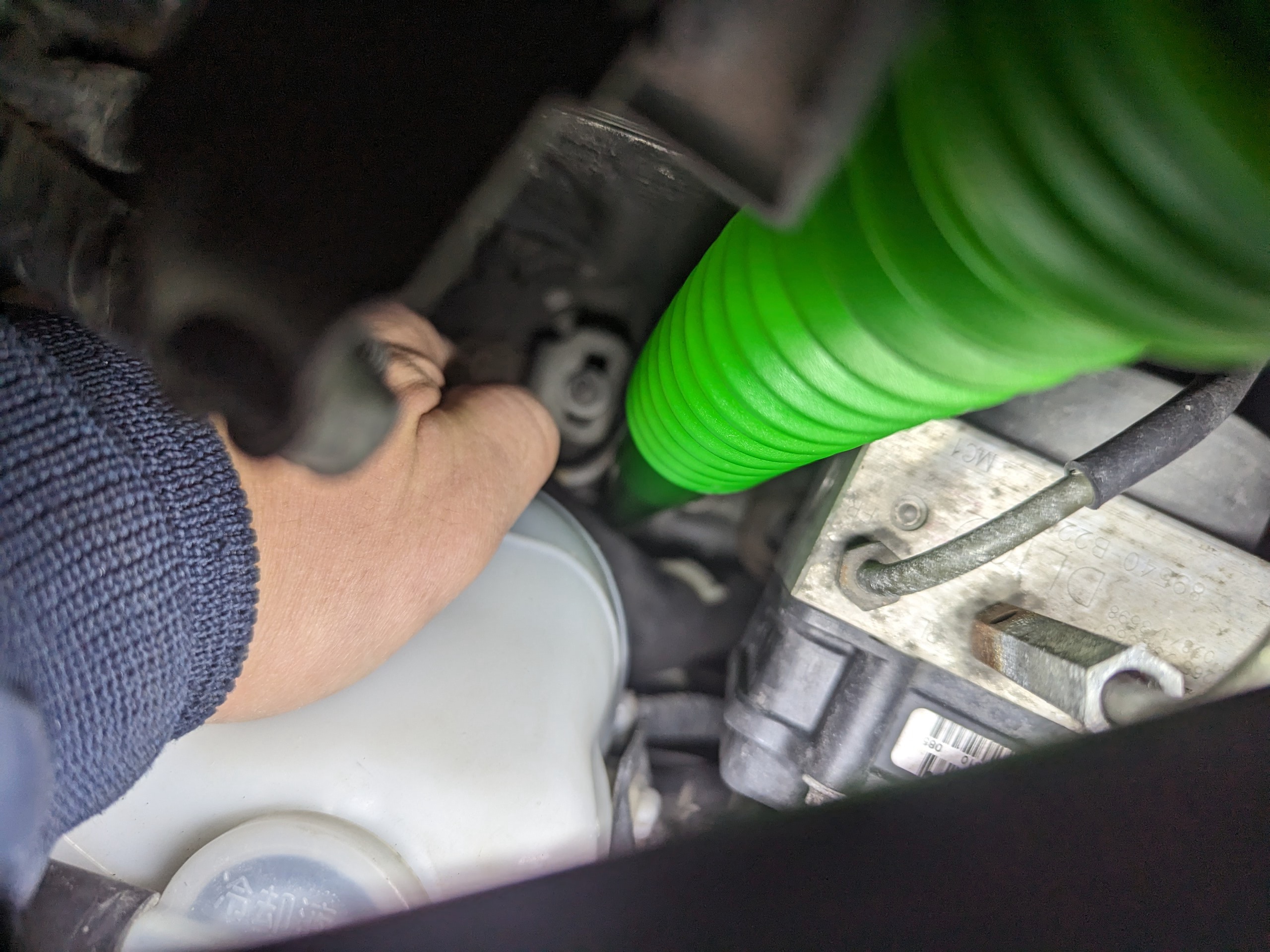 ドレンガスケットをそのままにし、ドレンを手で締め、5w40のオイルを注入して10分ほどアイドリング。