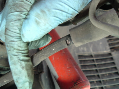 | 帝王号、大ピンチ!! 帝王号も12年目です。いろいろガタが出てきました・・・。 帝王号、実はかなり前からフロントのブレーキホースに亀裂が入ってまして、いつか交換しようと思いながらけっこうな歳月が経っていました。新品のホース自体は既に手元にあったのですが、要は面倒だったので作業していなかったのです(笑) あらら・・・ やばいっすね^^; 交換します。子供も乗せる車ですし。 B5のブレーキホース交換は特別な作業はなく簡単です。但し、DIYで行う場合はブレーキという一番重要な部分なので自信の無い方はプロにお任せください。整備不良だと最悪の場合は死亡します。 ブレーキパイプ、ホースの分解は必ずフレアナットツールを使うこと。左はすんなり終わって、余裕の顔で右へ・・・・。ホースの接続を切り離そうとギュ〜とナットを回した瞬間、パイプも一緒に回ってしまいました。やばいと思って浸透潤滑剤を噴射してしばらく待ちます。 やっぱり駄目。ってゆーかもうホースどころかパイプが駄目になってしまいました。一発目に回した時にすでにクラックが入ったのでしょう。 とうとう漏れ始めました( ̄_ ̄;) ![]() こうなるとどうすればいいのか。 @ インチキ修理でパイプの駄目な部分だけカットしてフレアを作る。 A 汎用ブレーキパイプを買ってきて作る(ベンダーが必要) B 素直に純正パイプ(ライン)に交換(ベンダー必要?)。 結局、Bの純正のパイプ交換に決めました。ベンツもアウディもこうしたブレーキラインの交換は経験があるのですが欧州車ってパーツ図できっちり指定してブレーキパイプを注文してもストレートか巻物になって送られてきます。長さは合っているのですが、曲げ加工は自分で行うのが基本なのです。なのでベンダー(パイプを潰さずに曲げる工具)が絶対必要なのです。 今回はフロントの右のブレーキラインを注文しました。ブレーキホース〜ABSユニットまでの一本です。値段を聞くと純正定価 3500円!!安い。間違いなくストレートパイプと確信(笑) すぐにハンドベンダーも別ルートで注文。 数年ぶりに帝王号は不動車となりますた。 一週間後。 ![]() 一週間後。さあ、作業開始〜〜〜。 送られてきた箱がやたらデカイ。なんで??? 開けてビックリ。親切に形がついてました!でもこんなの曲げないで交換できるのかな・・・・。かなり不安。 一応取り付け時に曲げが必要になってくるかも知れないのでベンダーはキャンセルしませんでした。 あ、意外に4気筒って後のスペースあるのね。 帝王号はウエストゲートとクーラントタンクを外すとエンジンの後に手がすんなり入ります。もしかしたらできるかも。 フルードを全抜き。不良になったホース〜パイプ間のフレアナットを破断させて切る。ABSユニットに付いているフレアナット12、11mm、パイプは全部外します。交換する側のタイロッドエンドを外す(13mmボルト・ナット、16mmボルトナット)。ショックアブソーバー裏側のカバーを外す(10mmナット)。ミッションとボディの隙間にブレーキラインが走っている。ブレーキラインを固定しているロック(3箇所)をマイナスドライバーで外す。ホイールハウス側からパイプを抜く。左回転を多用しながら絶対に曲げないように引き抜いていく。上の画像の位置までは楽に抜けるはず。 ここから右回転。ニョロニョロ〜・・・・。 ニョロ〜。 交換したらホースも交換。これが目的だったのです^^ エア抜きして終わり。 賞味3時間くらい。巨大知恵の輪だと思えば楽しいものでした。 今回の作業は4気筒だからサクサク進みましたが、V6だときついでしょう。やっちまった方は頑張ってください^^ おまけ。 最近、下回りからガラガラと音がしたりしなかったりでした。帝王号は経年劣化が進んでいるので年々デチューンを繰り返して出力を落としてます。エキゾーストも段々細くしているのですが去年製作した前側のセンターマフラーの内部が損傷してました。今回はそれも作り直しました。